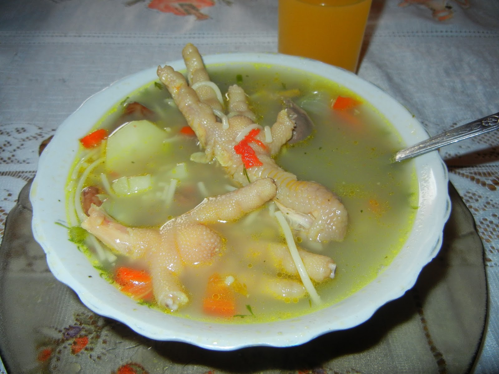So this week I had some... interesting food. Caldo de pata pollo. Yeah that's chicken foot soup.